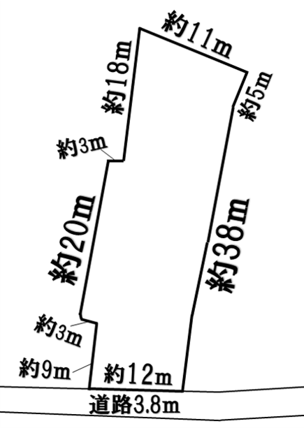 南側道路幅員約3.8mの公道に約12m接面する